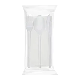 TRIS: TOVAGLIOLO 1V COLTELLO FORCHETTA E CUCCHIAIO BIANCO RIUTILIZZABILE CRT. DA 500 PZ