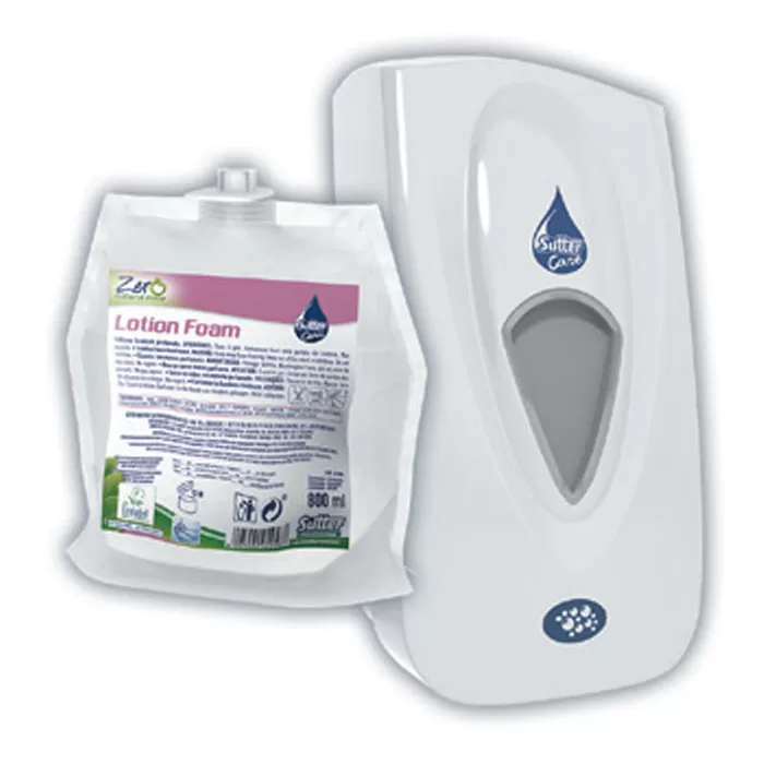 Dispenser personalizzato “Sutter Care” per i prodotti lavamani in crema ANTIBAC CREAM 800 ml e LOTION CREAM 800 ml. Dispenser con sistema โcaptiveโ per lโinserimento selettivo delle pouch/ricariche e con finestra colorata grigia, utile anche per controllare il livello di prodotto. Erogazione: 1 ml/dose.