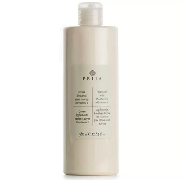 FLACONE BAGNO CREMA IDRATANTE CORPO CON VITAMINA E 380 ML. LINEA PRIJA. Bagno Crema Idratante corpo con vitamina E. Protegge dallโinvecchiamento cutaneo creando una barriera di idratazione che dura nel tempo e assicura una pelle morbida e setosa.
