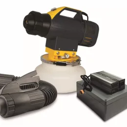 Nebulizzatore elettrico a freddo rotante. Apparecchio rotante, per la copertura di un angolo di 180° o 360°, per la nebulizzazione ULV di formulati liquidi, assicura un’ottima e razionale erogazione con una percentuale di goccioline comprese tra i 5 e i 10 micron superiore al 70%. Costruito in materiale termoplastico resistente agli urti ed agli agenti chimici, dotato di un motore elettrico potente e di un innovativo sistema di regolazione del flusso. Ideale per trattamenti di disinfestazione, disinfezione e deodorazione.
